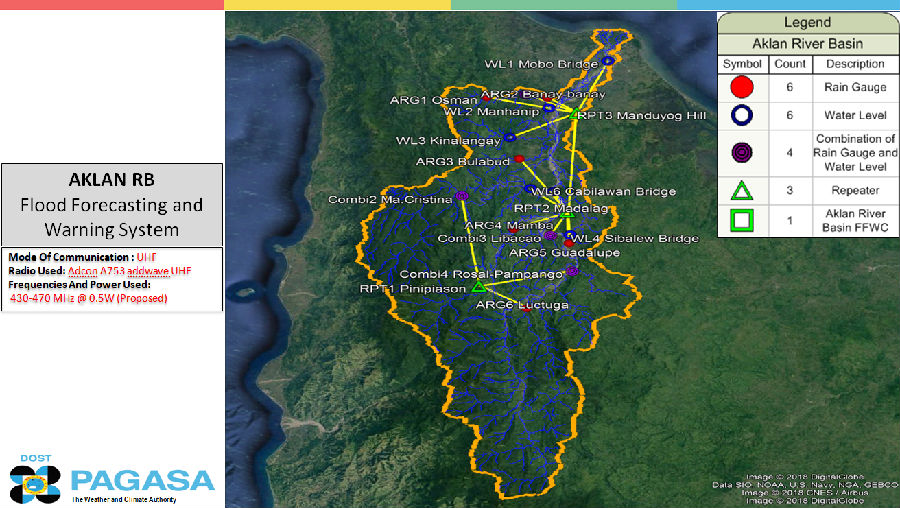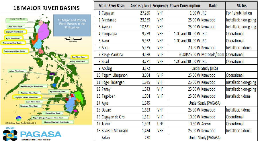 洪水預報預警系統(tǒng)對于經(jīng)常遭遇臺風的地區(qū)非常的重要。遭遇臺風暴雨的時候,水位上漲迅猛,洪水預報預警的水位監(jiān)測時效性非常重要,因此數(shù)據(jù)傳輸?shù)乃俣群头€(wěn)定非常重要。菲律賓境內多島嶼和河流分布,當?shù)卣瑫r使用了ADCON公司及其它公司的設備在菲律賓境內的18條河流11萬平方公里的流域內布設水位監(jiān)測系統(tǒng),ADCON使用430-470MHz頻段radio傳輸?shù)腞TU布設水位監(jiān)測系統(tǒng),以絕對的數(shù)據(jù)傳輸穩(wěn)定性和系統(tǒng)整體低功耗性能獲得菲律賓政府的高度肯定。