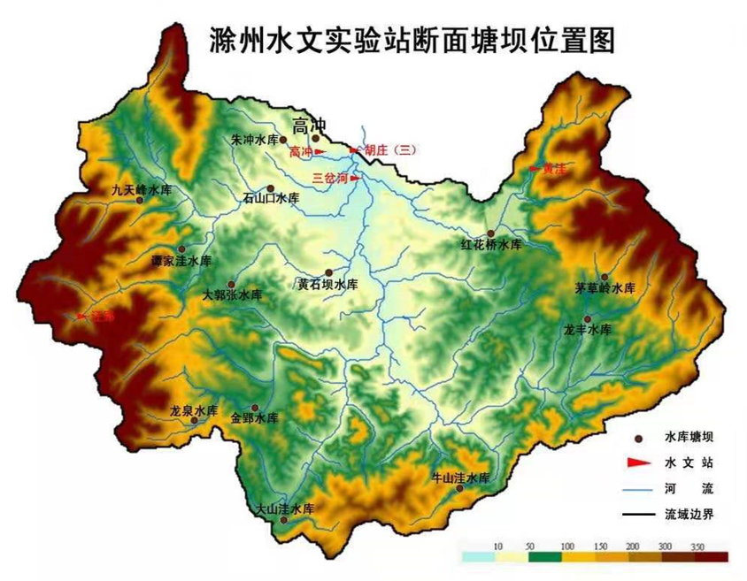 滁州實(shí)驗(yàn)基地面積約80平方公里,囊括了14個(gè)水庫(kù),項(xiàng)目選取其中9個(gè)點(diǎn)對(duì)水位進(jìn)行監(jiān)測(cè)。所有監(jiān)測(cè)點(diǎn)的數(shù)據(jù)通過Radio數(shù)傳的方式實(shí)時(shí)無線傳輸至數(shù)據(jù)服務(wù)器,各監(jiān)測(cè)點(diǎn)到服務(wù)器的直線距離最長(zhǎng)約10公里,部分監(jiān)測(cè)點(diǎn)至服務(wù)器間有山體阻隔信號(hào)。